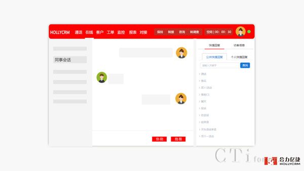 協(xié)作:管理員選擇指定會話、點擊【協(xié)作】按鈕,則該會話被管理員協(xié)作,客服可以繼續(xù)與客戶進行在線溝通,實現(xiàn)三方會話,管理員輔助客服解決問題,提升客戶滿意度。
