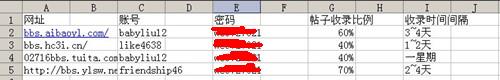 然后我們在就可以利用站長工具對這些論壇逐一進(jìn)行考察了解,包括收錄頻率、論壇活躍度、權(quán)重等等,最后再把可以用的篩選出來,記錄在excel表格上面,筆者在這里可以把我自己做的一個表格的一部分截圖給大家看看: