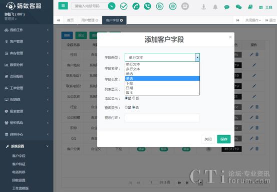 - 自定義客戶字段設(shè)置中,可將下級(jí)字段設(shè)置為可多選。