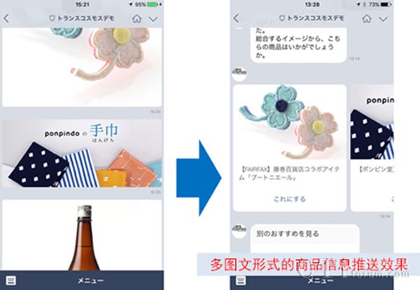 transcosmos集團(以下簡稱 transcosmos;總部:日本東京涉谷區(qū);總裁兼COO:奧田昌孝;東證代碼:9715)自2月起推出基于LINE平臺的"Messenger App電子商務動態(tài)對話服務",能夠?qū)崿F(xiàn)以多圖文形式,向不同的顧客自動推薦合適的商品。