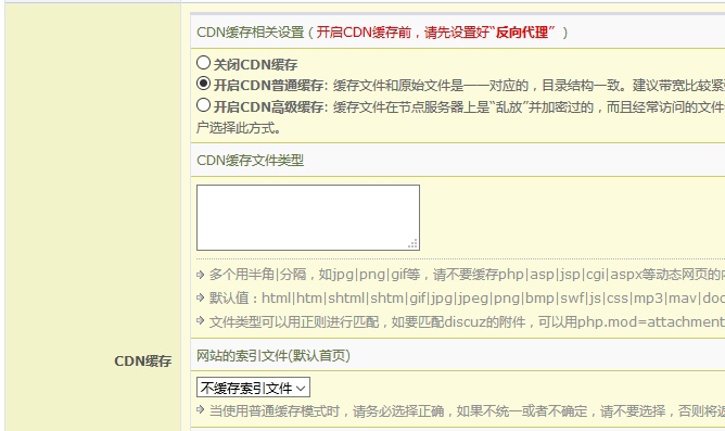 這里我們根據(jù)自己的需要選擇"開(kāi)啟CDN普通緩存",默認(rèn)是支持的靜態(tài)文件緩存類(lèi)型包括: