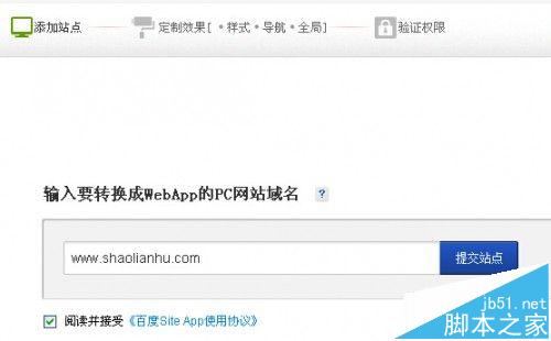第三步,輸入想要轉(zhuǎn)換的PC網(wǎng)站網(wǎng)址,閱讀并接受,然后點(diǎn)擊提交站點(diǎn),下一瞠步,如下圖: