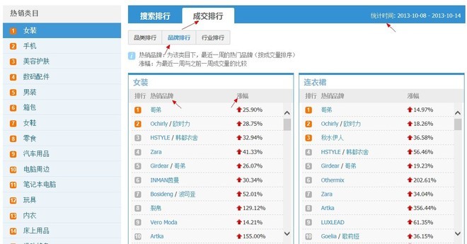 最后一個(gè)是行業(yè)排行。就是淘寶上面的類目排行。同樣要注意這個(gè)統(tǒng)計(jì)時(shí)間。