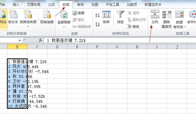 然后,就會(huì)看到結(jié)果,但是結(jié)果不是我們想要的格式。我們就在數(shù)據(jù)——分列把數(shù)據(jù)變換一下。
