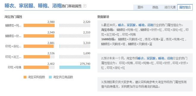 1.未來(lái)一個(gè)月,睡衣丶家居服丶睡袍丶浴袍行業(yè)在淘寶市場(chǎng):市場(chǎng)需求小幅上升。