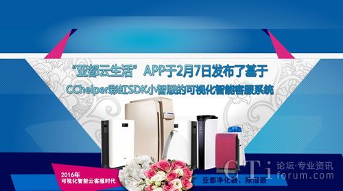 2016年2月7日,北京亞都科技股份有限公司在其最新的2.0版“亞都云生活”智能硬件App中發(fā)布了基于北京領(lǐng)通科技有限公司的CChelper彩虹SDK小智版的可視化智能客服系統(tǒng),這不僅是領(lǐng)通科技的移動(dòng)遠(yuǎn)程云客服系統(tǒng)在智能硬件領(lǐng)域的重要成果,同時(shí)也是亞都科技追求創(chuàng)新、關(guān)注客戶的一大亮點(diǎn)和特色。