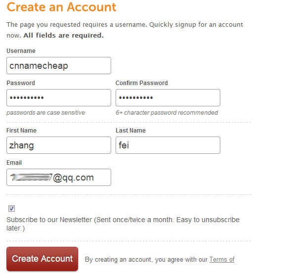 填寫(xiě)賬戶基本信息,用戶名、密碼、以及姓名和郵箱,郵箱必須正確,注冊(cè)之后會(huì)收到一封歡迎郵件。