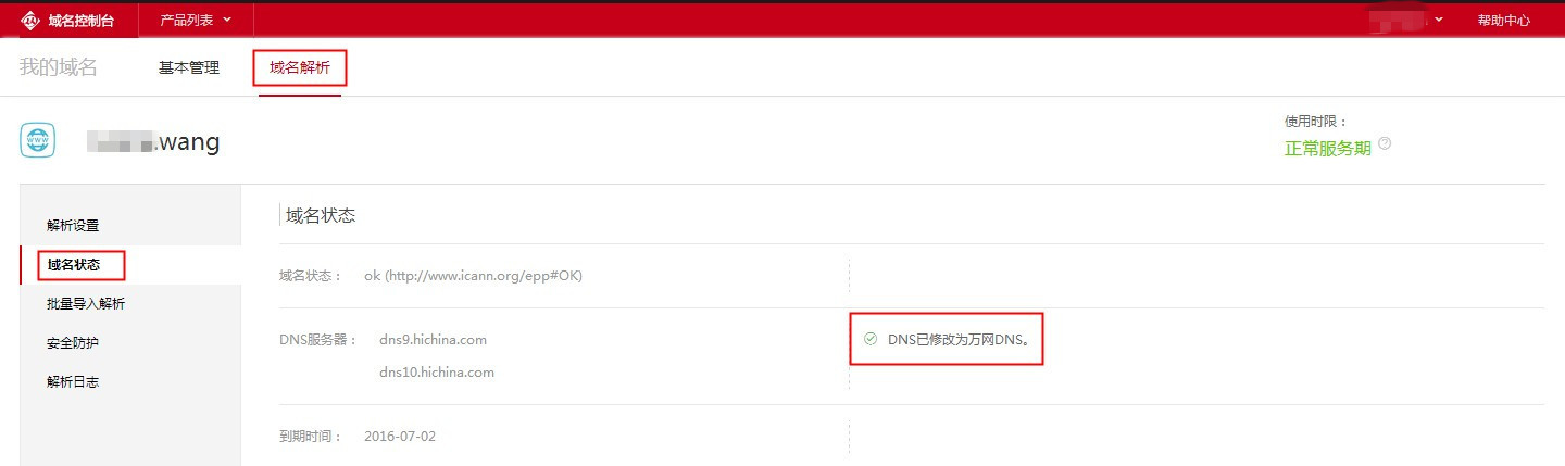 6、設(shè)置完成,請(qǐng)耐心等待DNS生效(48小時(shí)內(nèi)生效)。