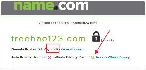 9、Name.com域名續(xù)費(fèi)一年成功,含一年的Whois保護(hù)服務(wù)。