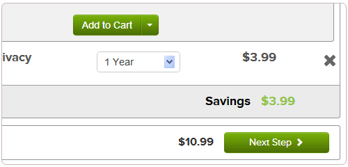 3、在購物車中,點擊添加3.99美元一年的Whois保護(hù)服務(wù)。