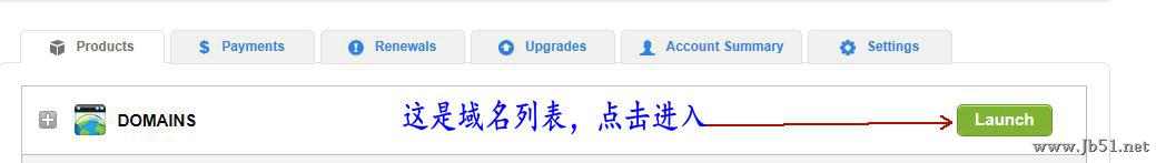 3.點(diǎn)擊domains后邊綠色的launch進(jìn)入域名列表