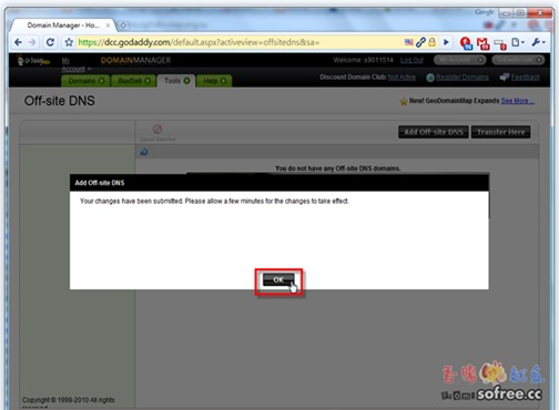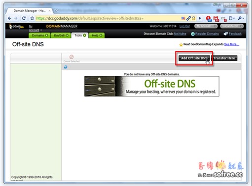 第3步 接著點(diǎn)擊右方的﹝Add Off-site DNS﹞,新增網(wǎng)址。