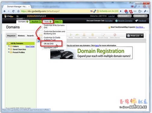 第2步 進(jìn)入后,請(qǐng)點(diǎn)擊【Tools】→【Off-site DNS】進(jìn)入設(shè)定頁(yè)面。