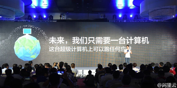 阿里云堅(jiān)信未來(lái)不是5臺(tái)計(jì)算機(jī),未來(lái)不是讓每個(gè)人的電腦桌上有一臺(tái)電腦。未來(lái)只需要一臺(tái)計(jì)算機(jī),這臺(tái)超級(jí)計(jì)算機(jī)是在互聯(lián)網(wǎng)上,是由互聯(lián)網(wǎng)公司依據(jù)互聯(lián)網(wǎng)公司,對(duì)數(shù)據(jù)以及對(duì)計(jì)算本身趨勢(shì)的判斷所提供。這臺(tái)超級(jí)計(jì)算機(jī)可以跑任何應(yīng)用,可以滿足大小數(shù)據(jù)處理的需求。