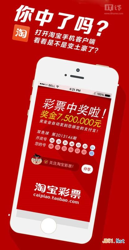 本周一,淘寶宣布花費(fèi)3600萬元購買了2013146期雙色球彩票的所有投注組合,并向手機(jī)淘寶用戶免費(fèi)發(fā)放。昨天凌晨,淘寶網(wǎng)首頁出現(xiàn)了一個(gè)巨大的二維碼,網(wǎng)友登錄手機(jī)淘寶客戶端掃碼即可搶雙色球彩票。淘寶的數(shù)據(jù)顯示,一分鐘內(nèi),這個(gè)二維碼被瘋狂掃碼20萬次,創(chuàng)造了一項(xiàng)世界紀(jì)錄。搶到彩票的用戶,可以在手機(jī)淘寶客戶端“我的淘寶——掃碼分錢”處查看自己的彩票號(hào)碼。