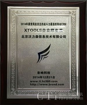 慧聰網(wǎng)影響科技的評(píng)選活動(dòng)中,中文地區(qū)第一CRM品牌XTools榮膺“2014年度最受網(wǎng)友關(guān)注的戰(zhàn)斗力最強(qiáng)的移動(dòng)CRM”殊榮,XTools獲此殊榮,不僅是整個(gè)管理軟件市場(chǎng)的驕傲,更是消費(fèi)者和媒體對(duì)XTools價(jià)值的高度肯定。
