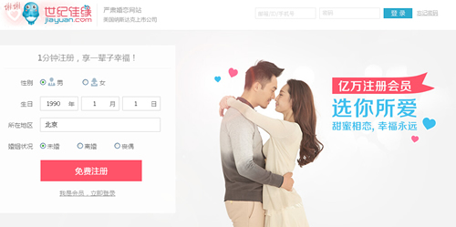 2011年5月11日,世紀(jì)佳緣登陸美國(guó)納斯達(dá)克全球精選市場(chǎng)進(jìn)行首次公開募股,成為首家上市的中國(guó)在線婚戀交友平臺(tái),股票交易代碼為“DATE”。根據(jù)艾瑞咨詢的數(shù)據(jù),2011年按照獨(dú)立用戶訪問(wèn)量以及用戶瀏覽時(shí)間,世紀(jì)佳緣在中國(guó)所有婚戀交友網(wǎng)站中均名列第一。截至2014年1月13日,世紀(jì)佳緣已擁有逾1億注冊(cè)用戶。