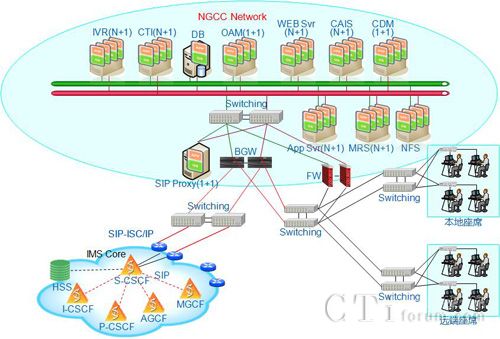 大連電信離岸外包呼叫中心的系統(tǒng)組網(wǎng)如下圖所示: