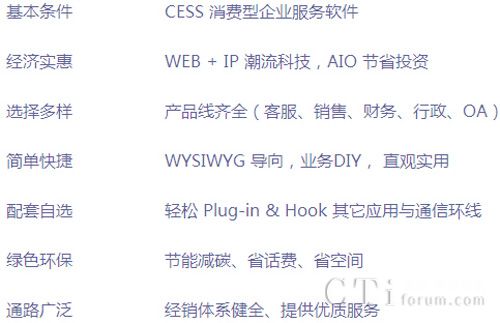 聲音和影像是最有力的溝通媒介。網(wǎng)絡(luò)商務(wù)雖然行之有年,卻無(wú)法突破實(shí)時(shí)影音溝通障礙,經(jīng)營(yíng)者也常因此錯(cuò)失銷售良機(jī)。贊云EZPhone打通Web to IP影音通信任督二脈,為企業(yè)注入廣大互聯(lián)網(wǎng)用戶的心聲。電子服務(wù)部門接受的不再是無(wú)聲的請(qǐng)求,而是在線,熱切,激動(dòng)的期盼,實(shí)在的聲音。它輕薄短小卻威力無(wú)窮,以Click-to-Call一點(diǎn)即通方式,讓CESS概念隨著公司的觸角延伸到全世界的范圍。網(wǎng)絡(luò)用戶不必下載插件,不用打開防火墻,不必付話費(fèi),可即刻點(diǎn)擊網(wǎng)絡(luò)電話進(jìn)行通話;此外EZPhone還可以接通傳統(tǒng)電話與IP電話,為企業(yè)節(jié)省龐大的話費(fèi)。