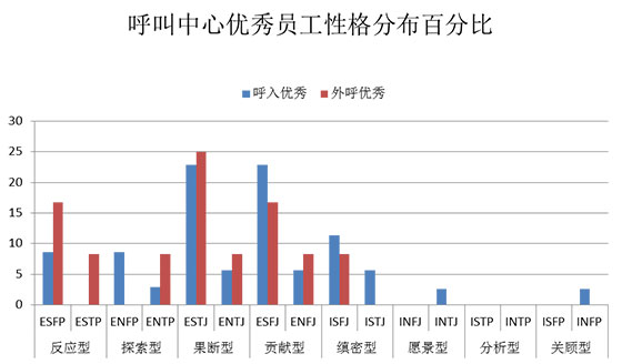 當(dāng)然,因?yàn)檫@些數(shù)據(jù)較早以前的測(cè)評(píng),人數(shù)也不夠多,特別是優(yōu)秀員工,數(shù)量太少,不足以說明問題。另外,這個(gè)測(cè)評(píng)結(jié)果表明外傾性格的人更適合呼叫中心的客服崗位,這和以往我們的習(xí)慣性結(jié)論似乎不是很吻合,究竟是不是真的如此,還有待于更進(jìn)一步深入的研究?!?