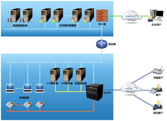 系統(tǒng)會對來電進行統(tǒng)一管理,記錄客戶信息,并可拓展通過PSTN或WEB等方式將業(yè)務(wù)分派到各部門進行業(yè)務(wù)處理,并且各部門與呼叫中心實現(xiàn)資源共享。