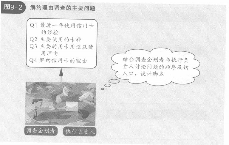這次項(xiàng)目的目的不但是充分利用JACCS的呼叫中心這個(gè)已有的途徑,收集、分析打算解約的顧客的真實(shí)想法,減少信用卡的解約數(shù),還要挖掘新客戶,提高滿意度(見圖9-1)因此在調(diào)查當(dāng)中,必須設(shè)定可以準(zhǔn)確地詢問出決定信用卡使用或者解約的因素,對(duì)顧客的真實(shí)意見進(jìn)行菜度分析。項(xiàng)目成員在考慮調(diào)查手段及呼叫中心實(shí)際調(diào)查時(shí)的各種制約條件的同時(shí),進(jìn)行慎重的調(diào)查設(shè)計(jì)(見圖9-2)。比如,為了不給顧客造成心理1的負(fù)擔(dān),不會(huì)貿(mào)然詢問為什么解約,而是逐漸建立與顧客的信賴關(guān)系,分階段詢問顧客信用卡使用的實(shí)際情況,在問題的JI醇和表達(dá)技巧上下工夫。通過這樣一番努力,顧客對(duì)調(diào)查的配合率達(dá)到了約九成,同時(shí),在一般化的解約理由的調(diào)查中無法詢問出的主要卡種及信用卡使用的決定因素,在此次調(diào)查中也詢問出來了。