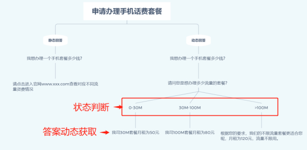 私有化部署定制化的智能客服場景在知識獲取上,除了支持靜態(tài)獲取知識問答外,還需要提供從業(yè)務(wù)系統(tǒng)中獲取動態(tài)知識進(jìn)行問答的產(chǎn)品化能力;如下圖一個業(yè)務(wù)點(diǎn)流程: