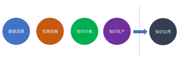 第一個提供的產(chǎn)品化工具應(yīng)用在知識生產(chǎn)和管理過程,目的是提高知識轉(zhuǎn)化效率。一般在項目啟動時,會通過在線日志、業(yè)務(wù)文檔文件、已有客服知識點(diǎn)來梳理統(tǒng)籌項目整體知識庫框架;針對大多數(shù)情況,即線上對話日志和已有客服知識點(diǎn),知識生產(chǎn)的流程基本可以分為下面幾個步驟:
