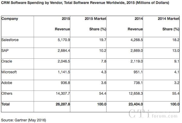 根據(jù) Gartner 今年 5 月的數(shù)據(jù),Dynamics CRM 目前的市場份額為 4.3%,落后于 Salesforce、SAP 和甲骨文。