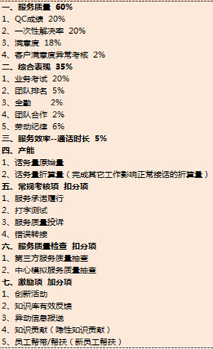 制度是呼叫中心運(yùn)營(yíng)的框架,制度的有效實(shí)施能夠使呼叫中心各方面的工作均在有章可循、有章可依的條件下進(jìn)行,同時(shí)將制度的實(shí)施過程和結(jié)果進(jìn)行量化,就構(gòu)建起了呼叫中心的績(jī)效管理體系。