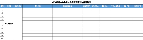 ?、?span > 《XXX呼叫中心流程審計(jì)時(shí)間計(jì)劃表-業(yè)務(wù)處理類流程》