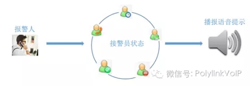對于接警員的狀態(tài)(空閑、忙碌、電話振鈴等)給主叫播放不同語音提示。