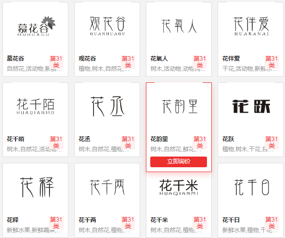 目前中牌商標(biāo)網(wǎng)有很多處于商標(biāo)轉(zhuǎn)讓狀態(tài)的鮮花商標(biāo)。