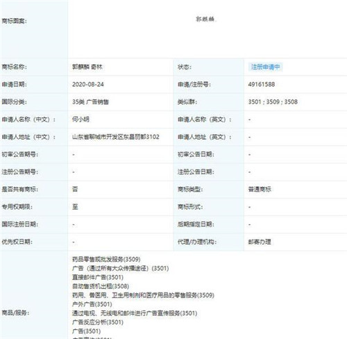 巨人網(wǎng)絡(luò)通訊聲明:本文標(biāo)題《“郭麒麟、奇林”商標(biāo)遭惡意搶注,德云社一方未回應(yīng),粉絲急壞了》,本文關(guān)鍵詞 郭麒麟,奇林,商標(biāo),遭,惡意,;如發(fā)現(xiàn)本文內(nèi)容存在版權(quán)問題,煩請(qǐng)?zhí)峁┫嚓P(guān)信息告之我們,我們將及時(shí)溝通與處理。本站內(nèi)容系統(tǒng)采集于網(wǎng)絡(luò),涉及言論、版權(quán)與本站無關(guān)。