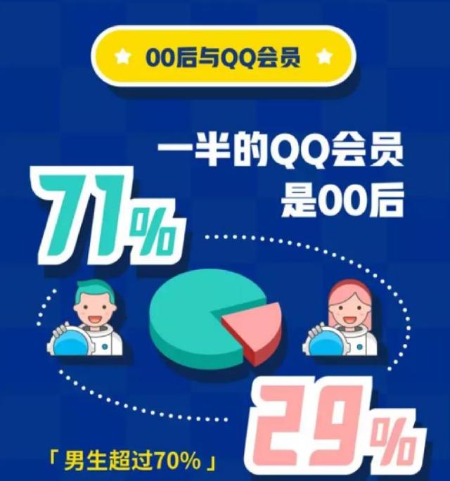 去年5月,騰訊發(fā)布的《00后在QQ》數(shù)據(jù)報(bào)告顯示,有一半的QQ會(huì)員來(lái)自于00后群體,其中男生占比達(dá)71%,女生占比為29%。另外,00后也是當(dāng)前QQ空間的主力軍,每天發(fā)布的說(shuō)說(shuō)中,有67%來(lái)自00后。
