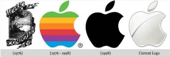 蘋果公司的LOGO從最開始的繁雜,逐漸演變?yōu)橐Я艘豢诘奶O果,顏色也由彩色演變?yōu)閱我坏念伾F(xiàn)在的LOGO兼具現(xiàn)代感與簡單之美。