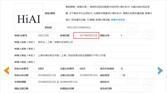 然而時(shí)隔23天之后,在2017年9月25日華為向媒體展示“HiAI”人工智能特性當(dāng)天,另一家名為“亮風(fēng)臺(tái)(上海)信息科技有限公司”(與華為公司有業(yè)務(wù)往來關(guān)系)就同日申請(qǐng)了幾乎一模一樣的“HiAI”商標(biāo)。