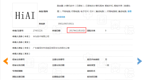 2017年11月10日華為公司向國家知識(shí)產(chǎn)權(quán)局商標(biāo)局提交注冊(cè)申請(qǐng)。